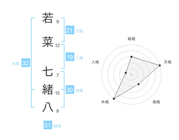 若菜 七緒八さんの外格は32画の5点!