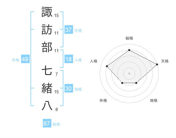 諏訪部 七緒八さんを姓名の画数から五運を鑑定