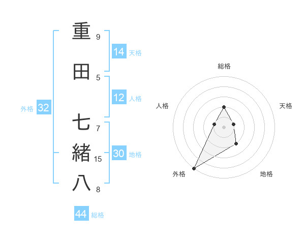 重田 七緒八さんを姓名の画数から五運を鑑定