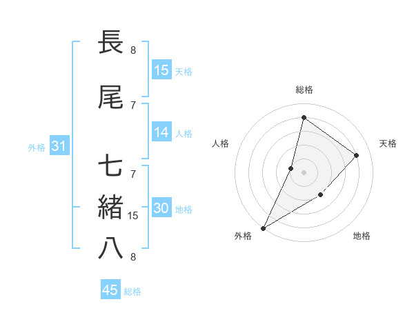 長尾 七緒八さんを姓名の画数から五運を鑑定