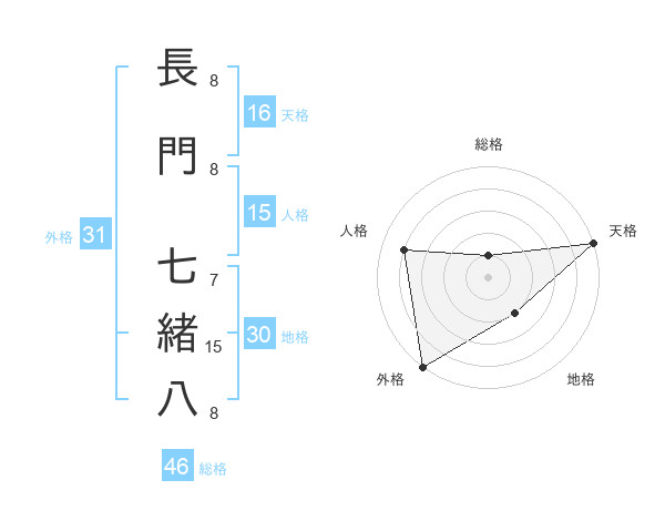 長門 七緒八さんを姓名の画数から五運を鑑定