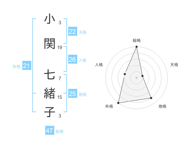 小関 七緒子さんを姓名の画数から五運を鑑定
