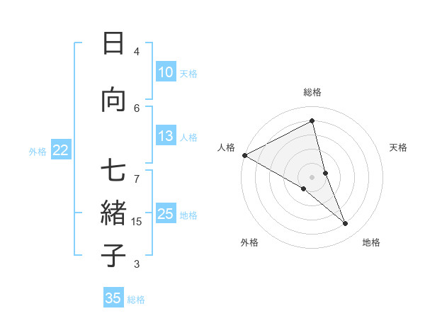 日向 七緒子さんを姓名の画数から五運を鑑定