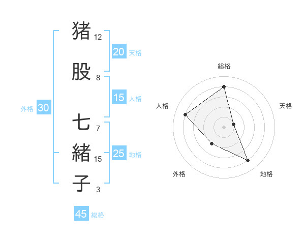 猪股 七緒子さんを姓名の画数から五運を鑑定