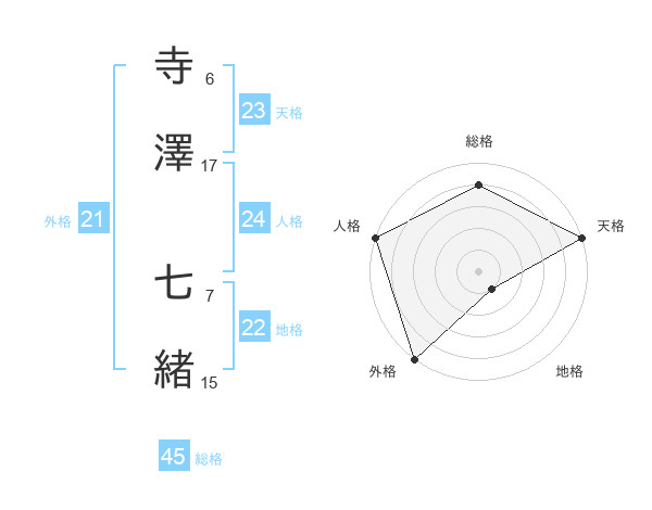 寺澤 七緒さんを姓名の画数から五運を鑑定
