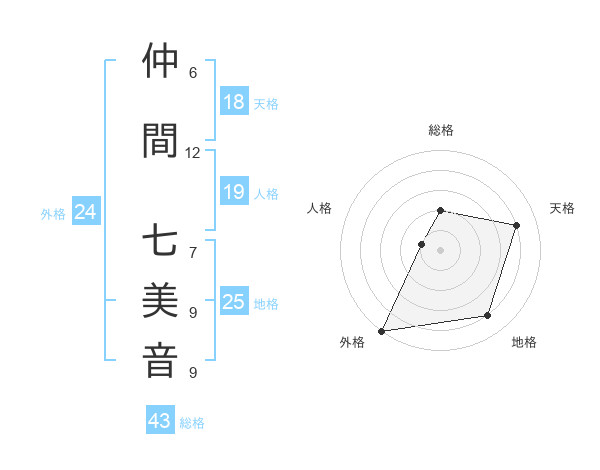 仲間 七美音さんの外格は24画の5点!