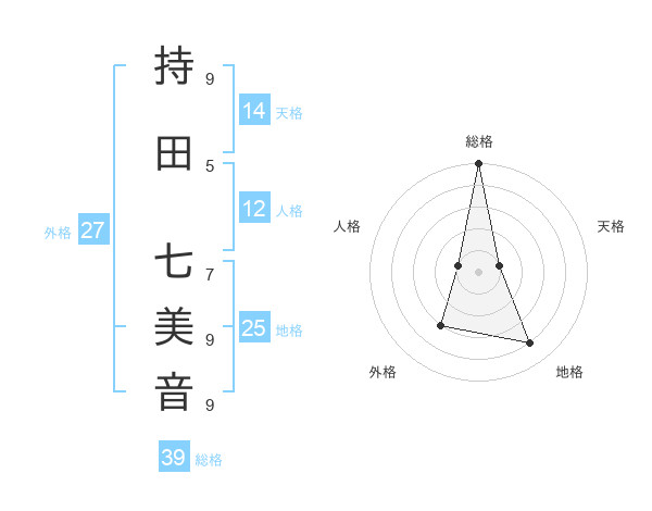 持田 七美音さんの総格は39画の5点!