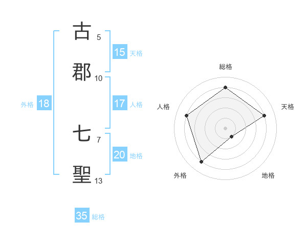 古郡 七聖さんを姓名の画数から五運を鑑定