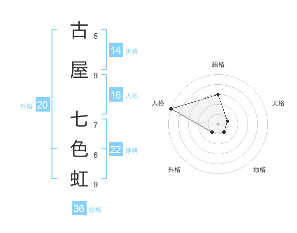 古屋 七色虹さんを姓名の画数から五運を鑑定