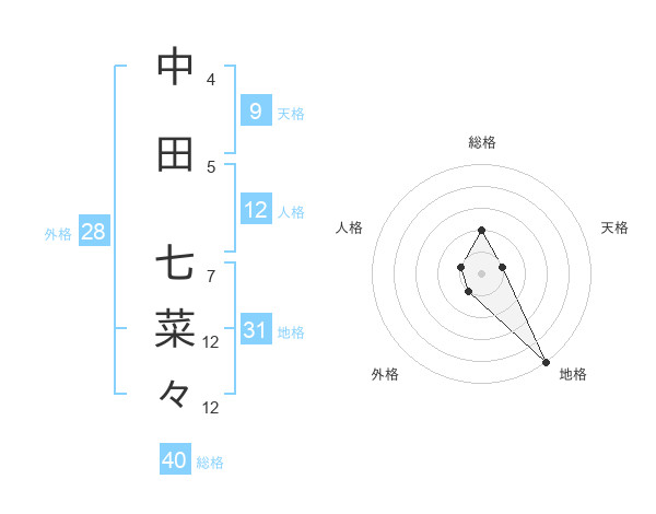 中田 七菜々さんの総格は40画の2点
