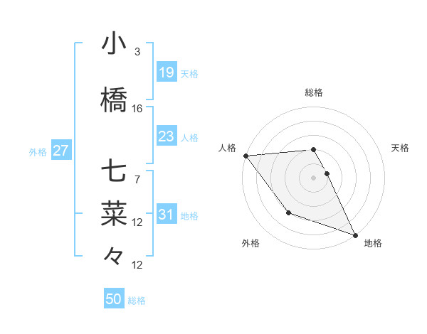 小橋 七菜々さんを姓名の画数から五運を鑑定