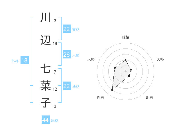 川辺 七菜子さんの天格は22画の1点!