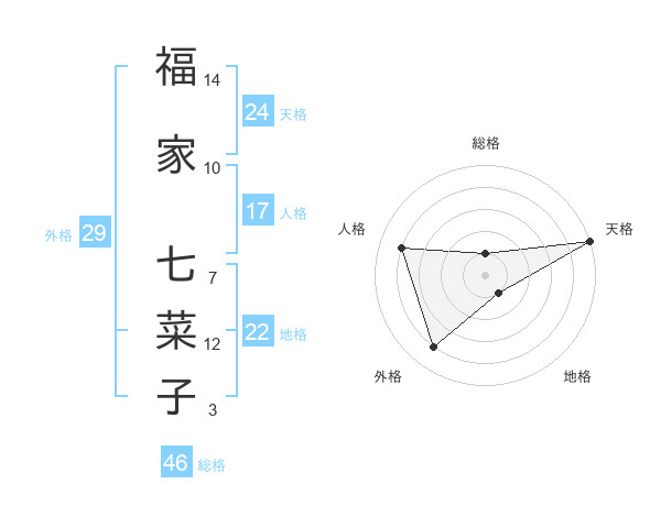福家 七菜子さんの天格は24画の5点!