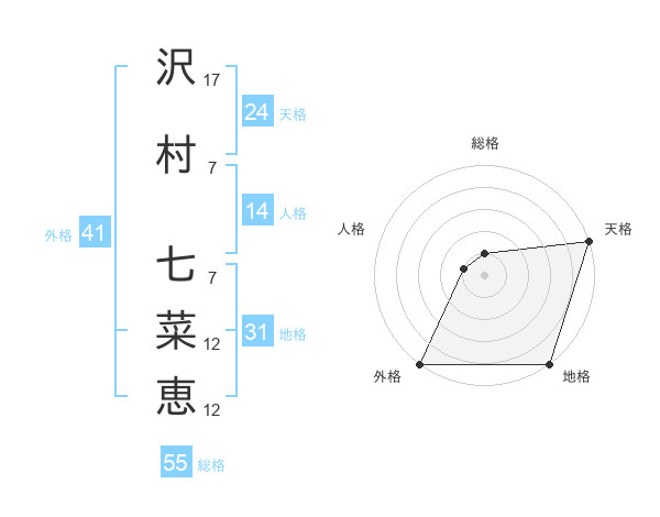 沢村 七菜恵さんの天格は24画の5点!