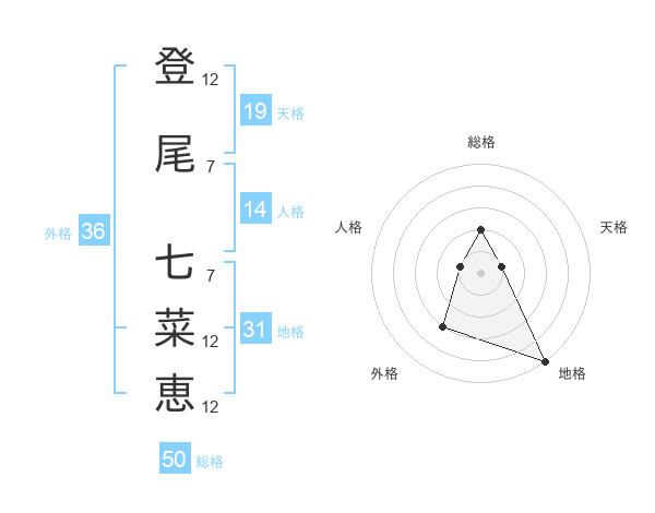 登尾 七菜恵さんの総格は50画の2点