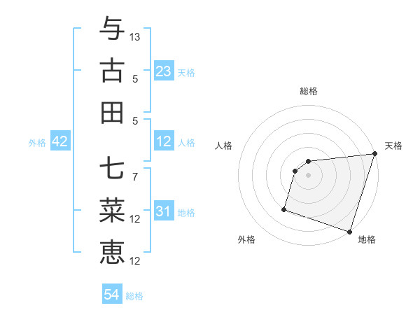与古田 七菜恵さんを姓名の画数から五運を鑑定