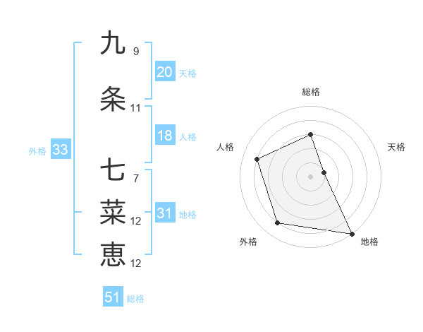 九条 七菜恵さんを姓名の画数から五運を鑑定