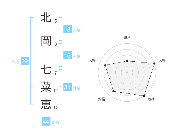 北岡 七菜恵さんを姓名の画数から五運を鑑定