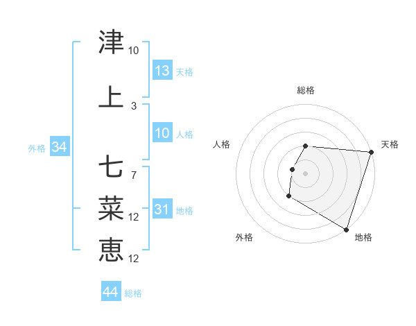 津上 七菜恵さんを姓名の画数から五運を鑑定