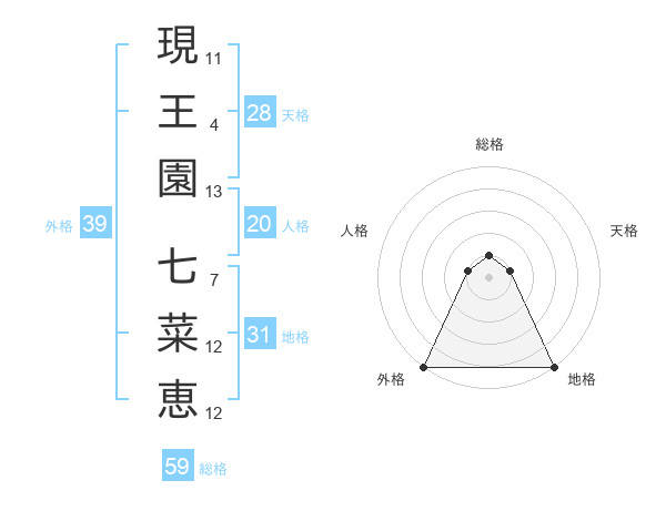 現王園 七菜恵さんを姓名の画数から五運を鑑定