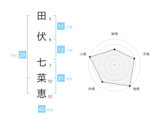 田伏 七菜恵さんの総格は42画の3点!