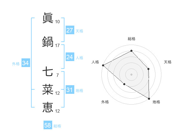 眞鍋 七菜恵さんの総格は58画の4点!