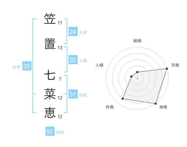 笠置 七菜恵さんを姓名の画数から五運を鑑定