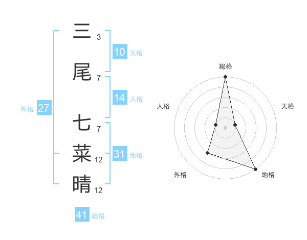 三尾 七菜晴さんの外格は27画の3点!