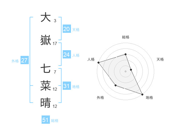 大嶽 七菜晴さんを姓名の画数から五運を鑑定