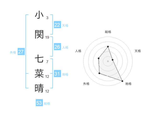 小関 七菜晴さんを姓名の画数から五運を鑑定
