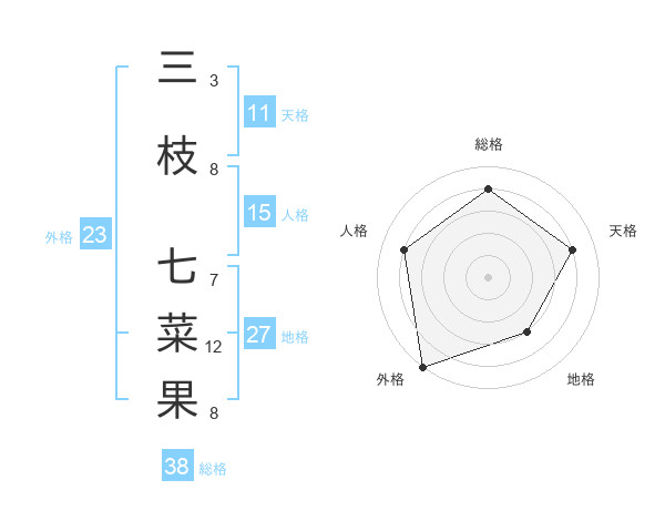 三枝 七菜果さんの総格は38画の4点!