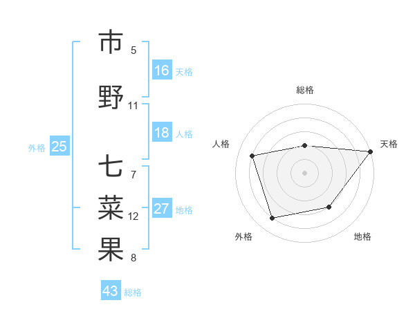 市野 七菜果さんの天格は16画の5点!