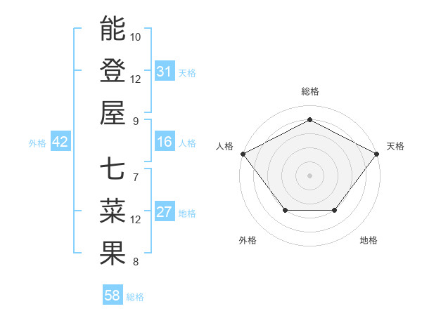 能登屋 七菜果さんを姓名の画数から五運を鑑定