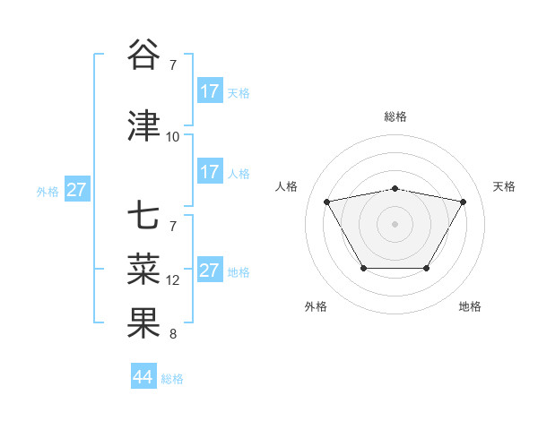 谷津 七菜果さんを姓名の画数から五運を鑑定
