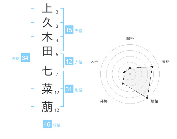 上久木田 七菜萠さんを姓名の画数から五運を鑑定