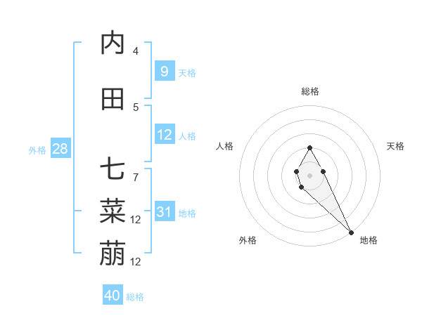 内田 七菜萠さんの総格は40画の2点!