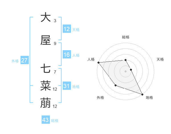 大屋 七菜萠さんの外格は27画の3点