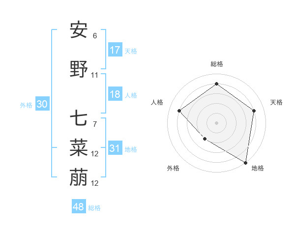 安野 七菜萠さんの総格は48画の4点!