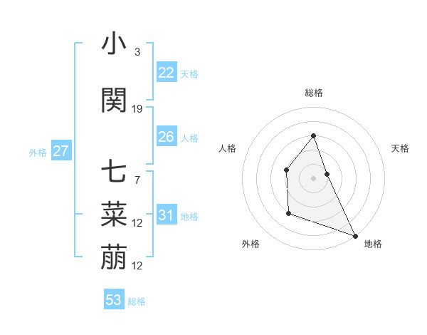 小関 七菜萠さんを姓名の画数から五運を鑑定