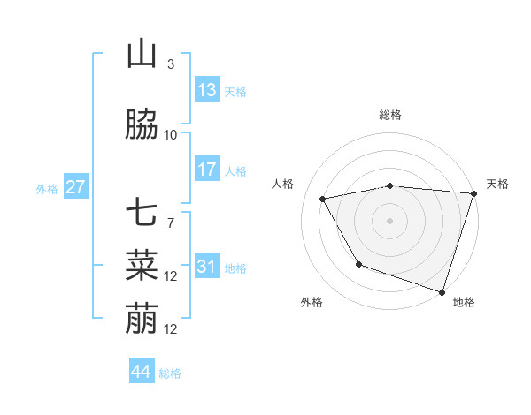 山脇 七菜萠さんの天格は13画の5点!