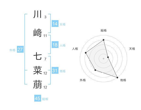 川﨑 七菜萠さんの総格は45画の4点!