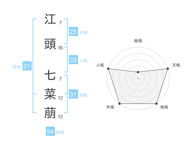江頭 七菜萠さんを姓名の画数から五運を鑑定