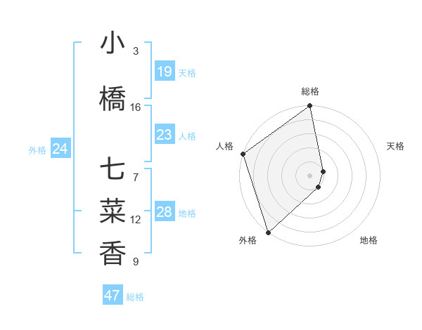 小橋 七菜香さんを姓名の画数から五運を鑑定