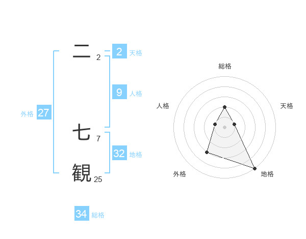 二 七観さんの総格は34画の2点!