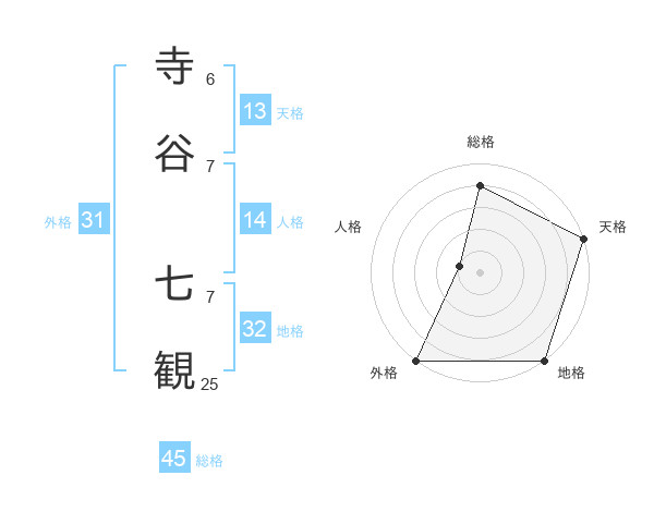 寺谷 七観さんを姓名の画数から五運を鑑定