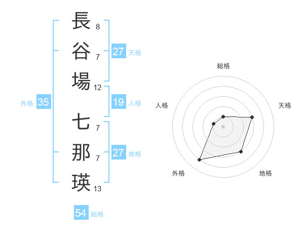 長谷場 七那瑛さんを姓名の画数から五運を鑑定