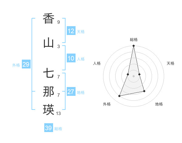 香山 七那瑛さんを姓名の画数から五運を鑑定
