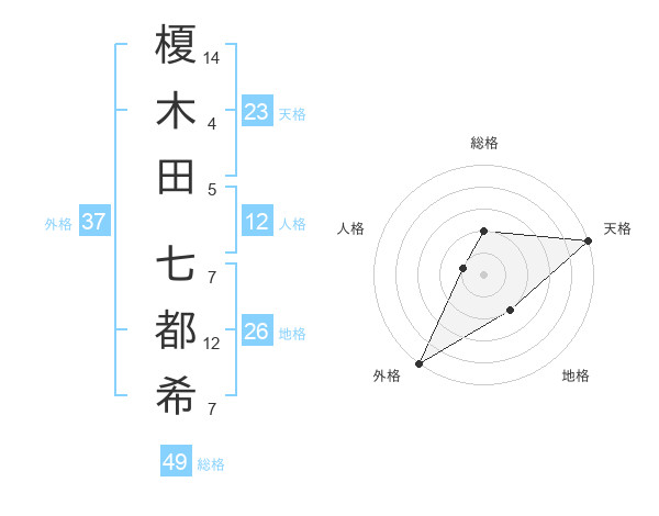 榎木田 七都希さんを姓名の画数から五運を鑑定