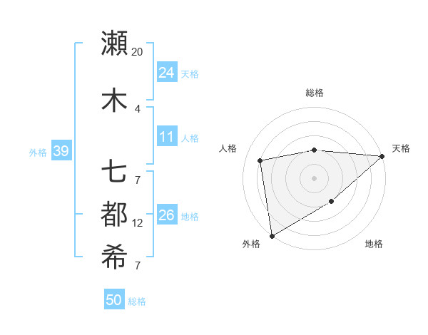 瀬木 七都希さんを姓名の画数から五運を鑑定