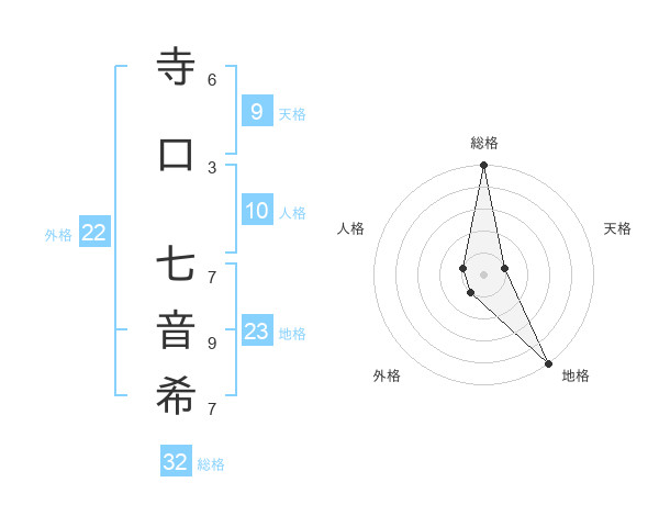 寺口 七音希さんの総格は32画の5点!